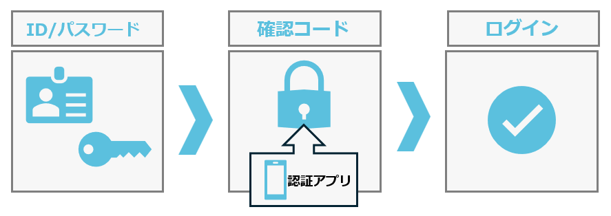 ログイン時には、IDとパスワードに加えて、事前に登録した認証アプリに表示される確認コード(時間ベースのワンタイムパスワード)を入力します。