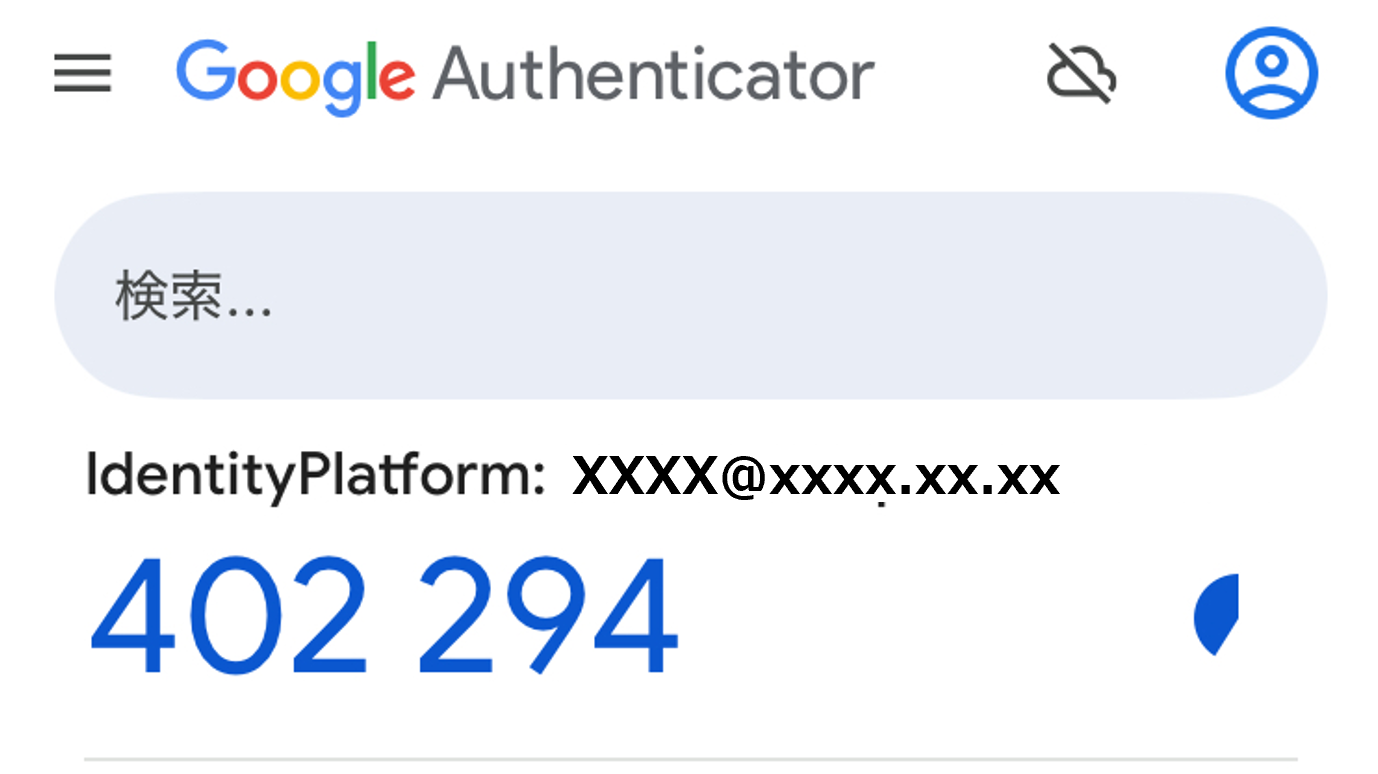 シークレットキーの入力が完了すると認証アプリにコード(数字6桁)が表示されます。