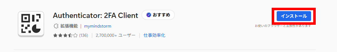 事前にブラウザの拡張機能のストアより、Authenticatorを追加登録してください。