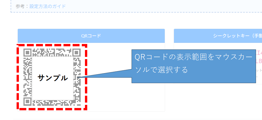 QRコードでの登録が行えない場合は、シークレットキーによる登録も可能です。