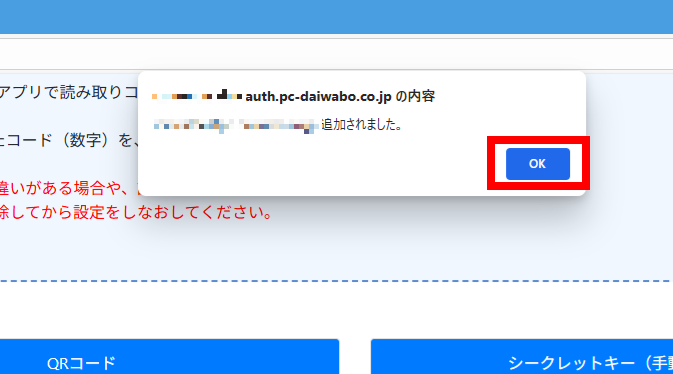 (まだ設定は完了していないので、ログアウトやページ移動はしないでください)