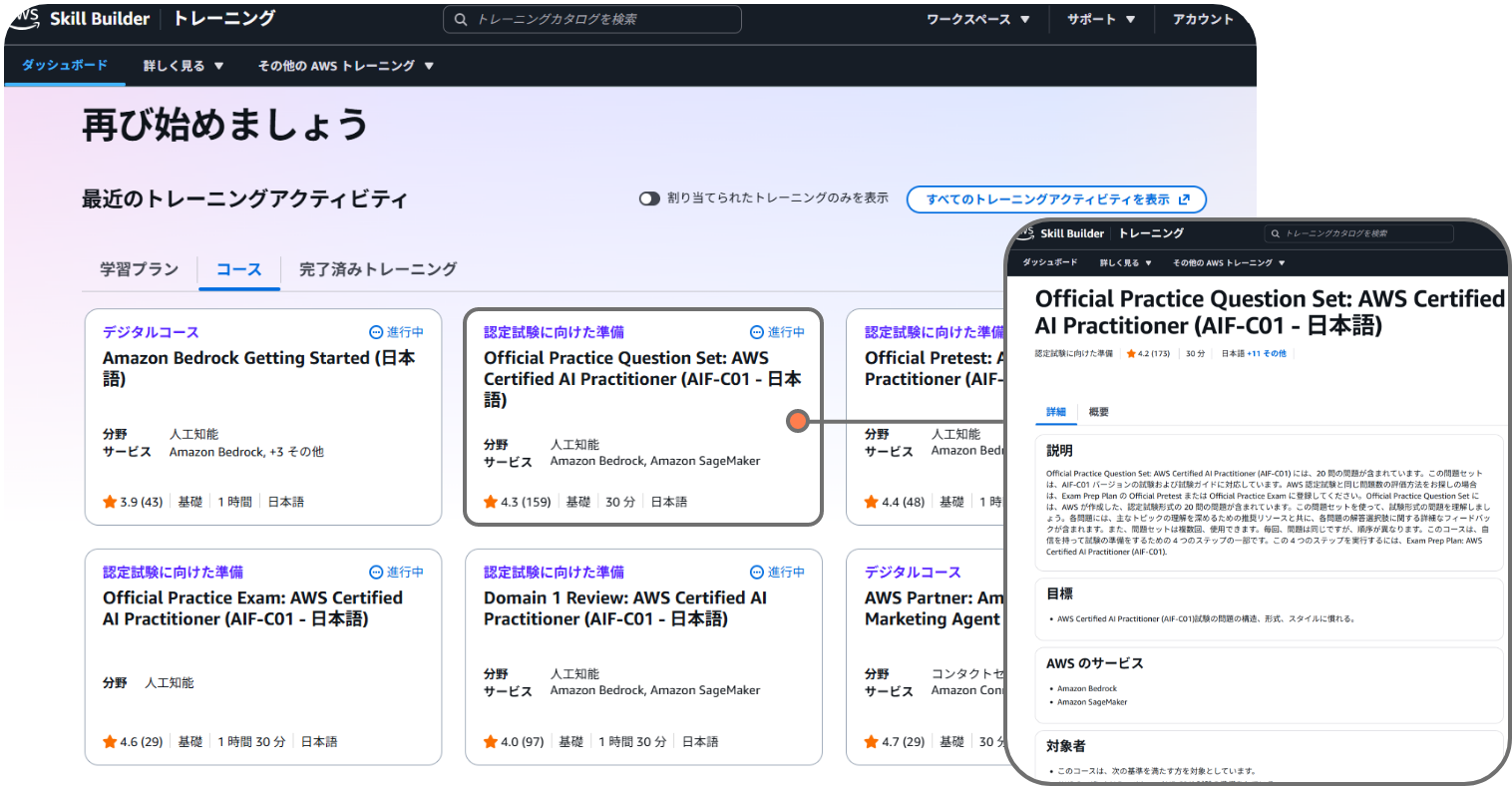 AWSの技術やサービスに関する知識を深めるためのオンライン学習プラットフォームです。