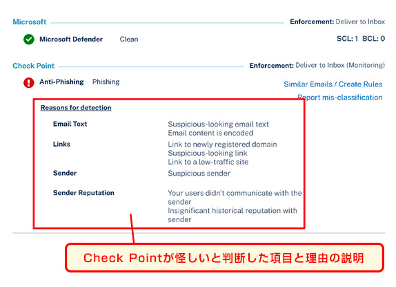 Microsoftはクリーンと判断したが、Check Pointはフィッシングと判断したメール