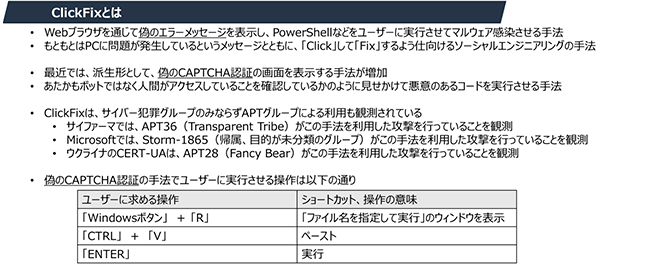 世界や日本に対するサイバー脅威情勢、利用されている攻撃手法や推奨される対策などについて情報提供いたします。ご参加の皆様に外部の脅威情勢を理解いただき、知見を深め、本質的なセキュリティ対策を検討していくための情報提供を行います。