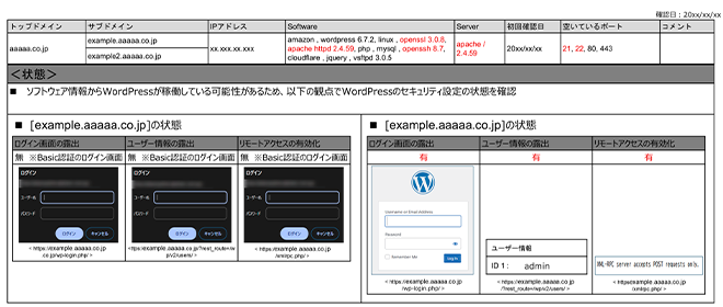 ログイン画面が露出している状態は攻撃者にとって魅力的なターゲットとなるため、ログイン画面が露出している可能性があるシステムを確認し、公開要否について検討頂くことを支援します。