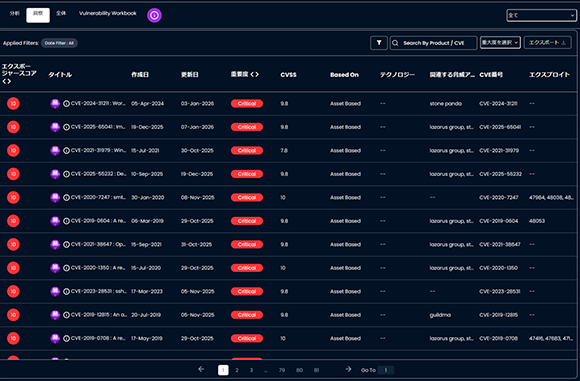 公表されている脆弱性やインシデント、深刻度、またそれを悪用する攻撃者の情報を確認することができます。