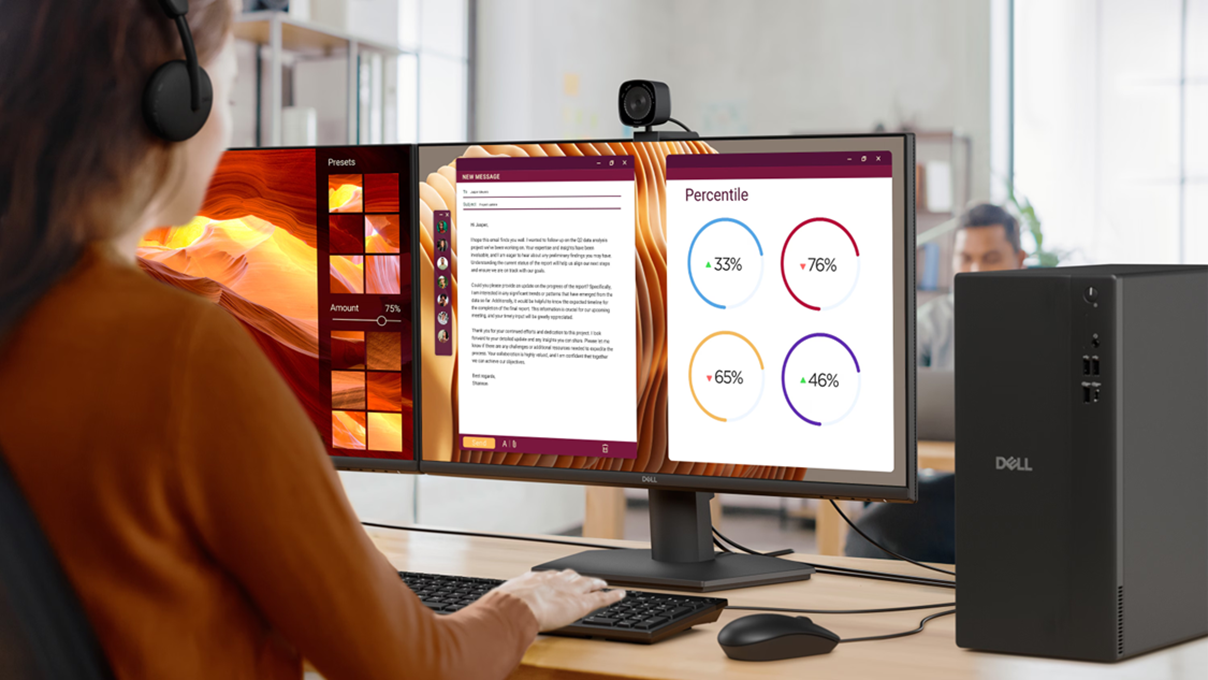 優れたパフォーマンスと必須のセキュリティを備えたデスクトップで、日々のタスクを確実にこなしましょう。
