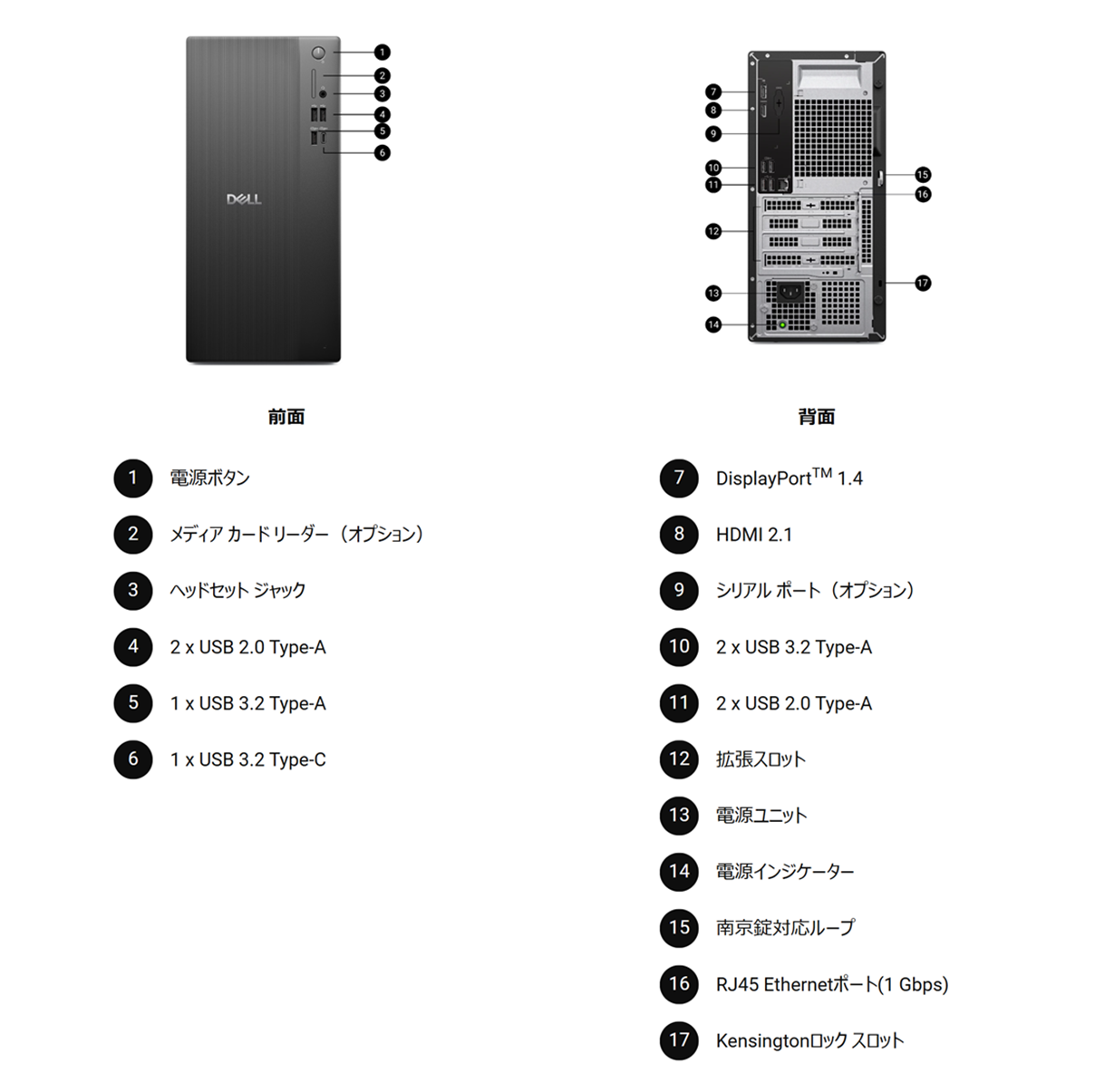 Dell ProタワーEssentialにはさまざまなデバイスを手軽に接続できます。