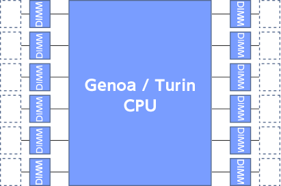 AMD GenoaおよびTurinプラットフォームは12のメモリチャネルをサポートしています。