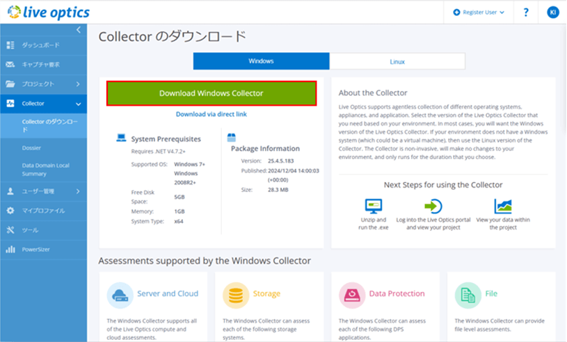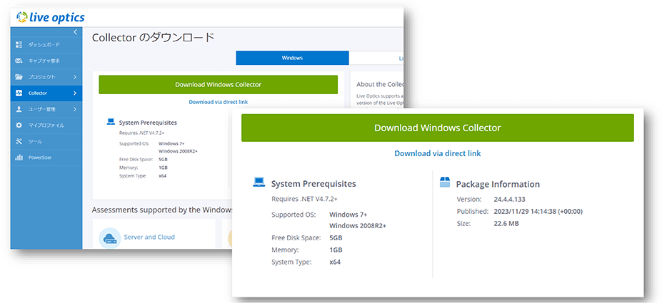 WindowsまたはLinuxを選択し『Download Windows Collector』よりダウンロードします