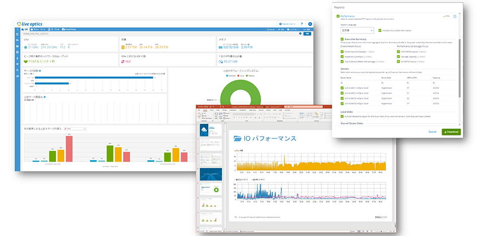 デル・テクノロジーズが提供する無償のアセスメントツールで、サーバー、ストレージ、仮想環境などのパフォーマンスや構成情報を収集・分析し、お客様の既存環境の稼働状況、インベントリ、システム構成を可視化します。無償なのに日々進化し、レポートも出るので運用ツールとしても使えます。