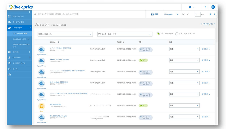 プロジェクトを作成し、複数人で情報共有したり、デル・テクノロジーズの社員と共有することも可能