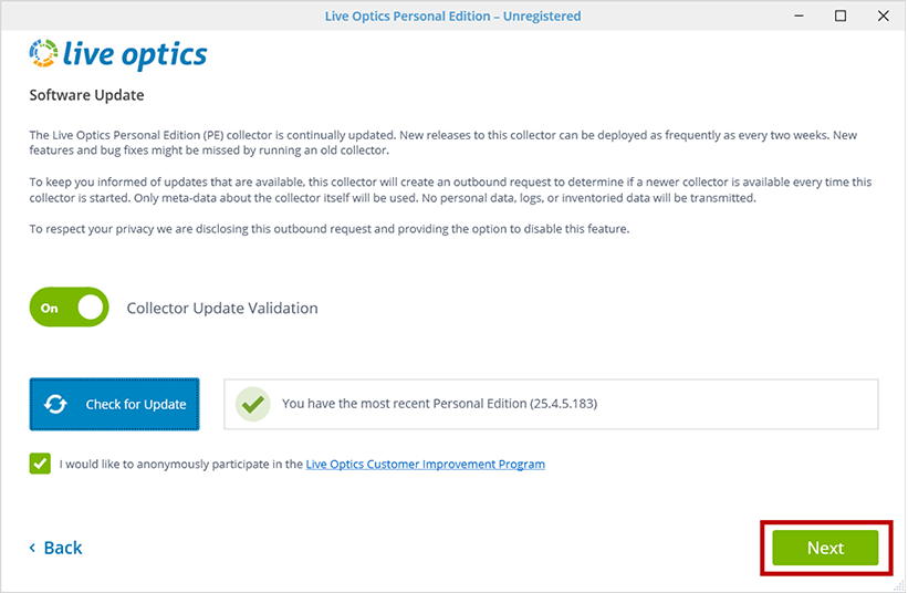インストールは不要です。Live Opticsモジュールを実行するだけです