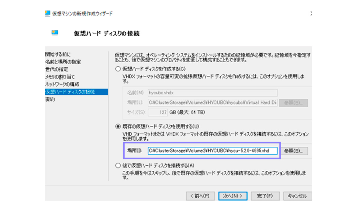 また、Hyper-Vマネージャーから、仮想ハードディスクの既定の保存先をローカルから共有ディスクへ変更する必要がございます。