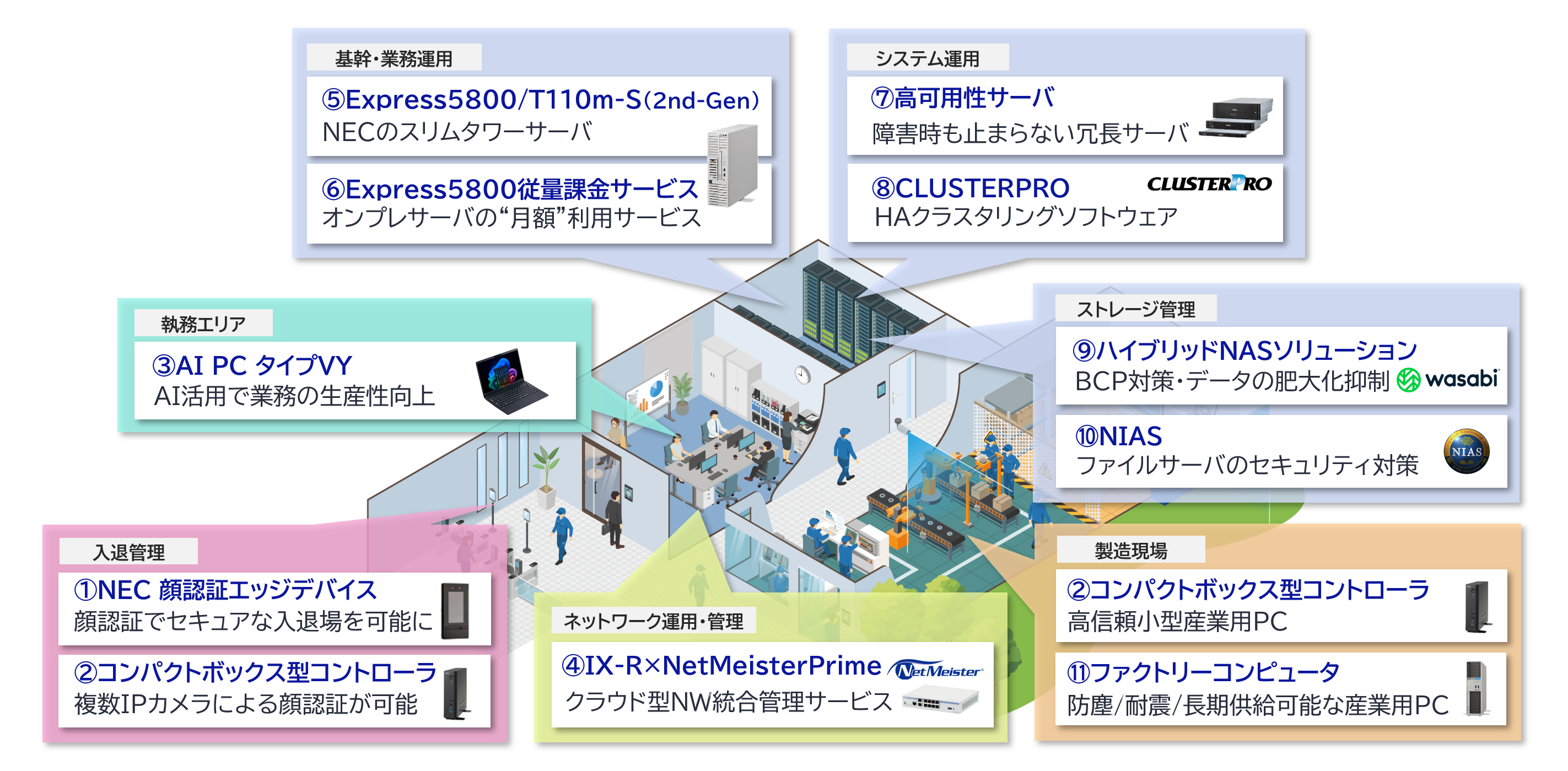 | 基幹/業務運用 | ⑤ | Express5800/T110m-S | NECのスリムタワーサーバ 水冷式冷却モデル含む豊富なラインナップ |