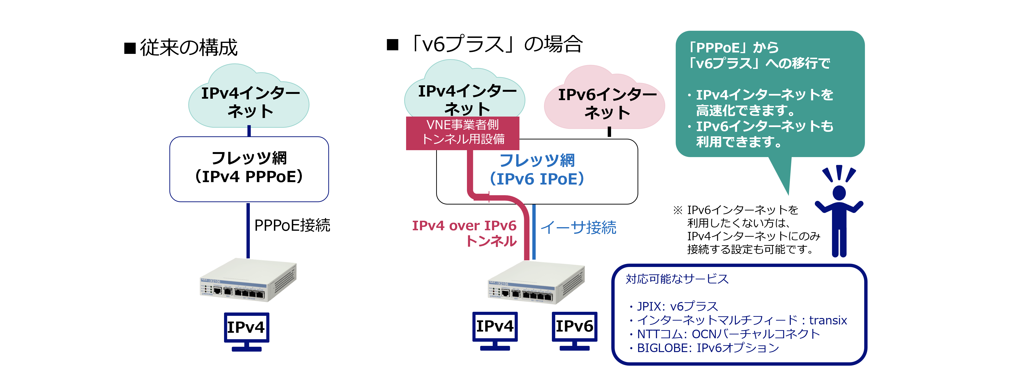 NTTコムのOCNバーチャルコネクトとBIGLOBEのIPv6オプションを利用したIPv4/IPv6インターネット接続(MAP-E方式)に対応
