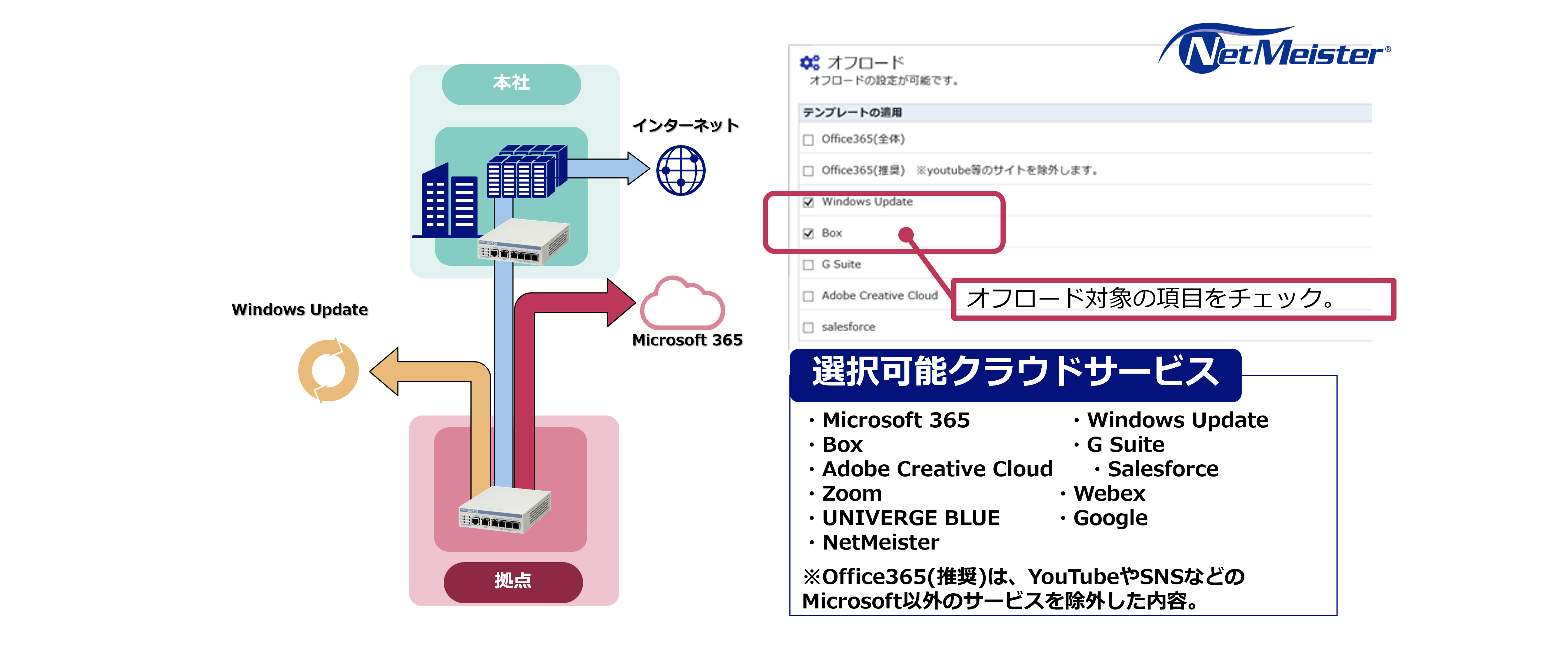 IXシリーズとNetMeisterとの連携で、オフロード対象とするクラウドサービスを自由に選択可能