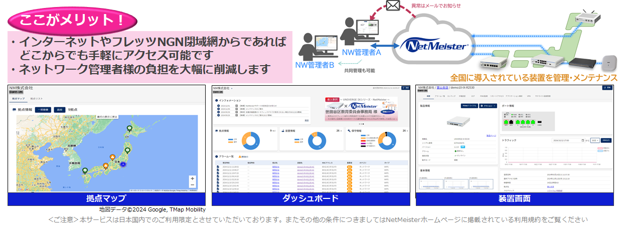 多拠点多数の装置を NetMeister で一元的にクラウドによる管理が可能に