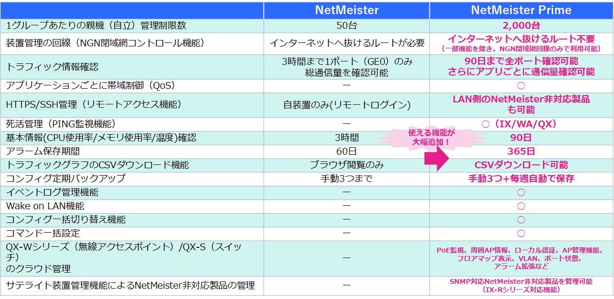 NetMeister(基本機能:無償)、NetMeister Prime(オプション:有償)