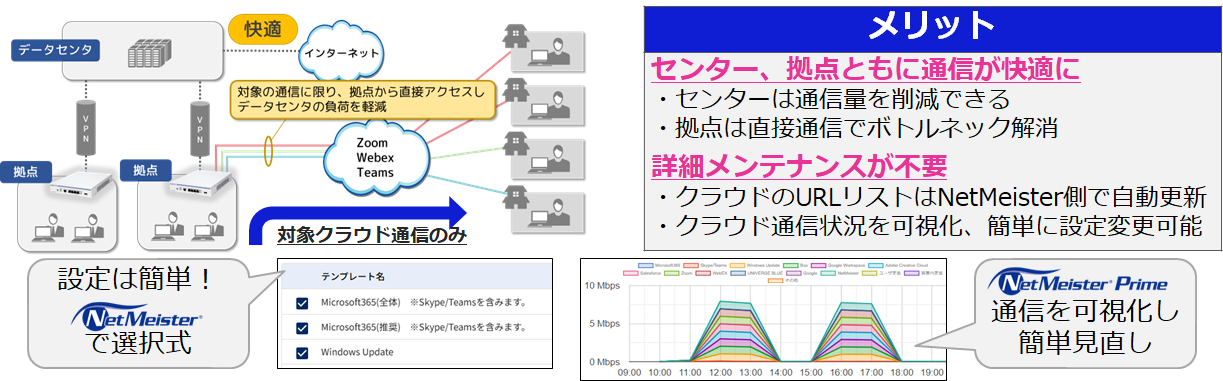 さらにMicrosoft365、Zoom、WebEXなどのローカルブレイクアウトを実現するURLオフロードリストの管理機能も標準装備。