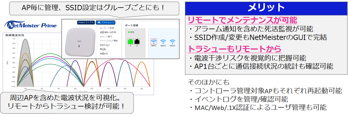 コントローラ管理の場合も配下アクセスポイントに対する設定や管理が可能です