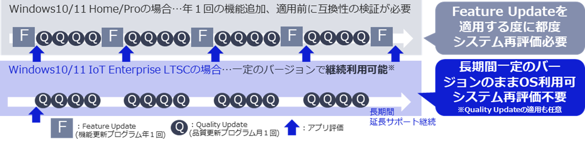 通常のWindows(Home/Pro)と同じ開発・管理ツール・ソフトウェアの動作が可能で、Feature Update(24H2/25H2等)適用を不要とする運用が可能です。