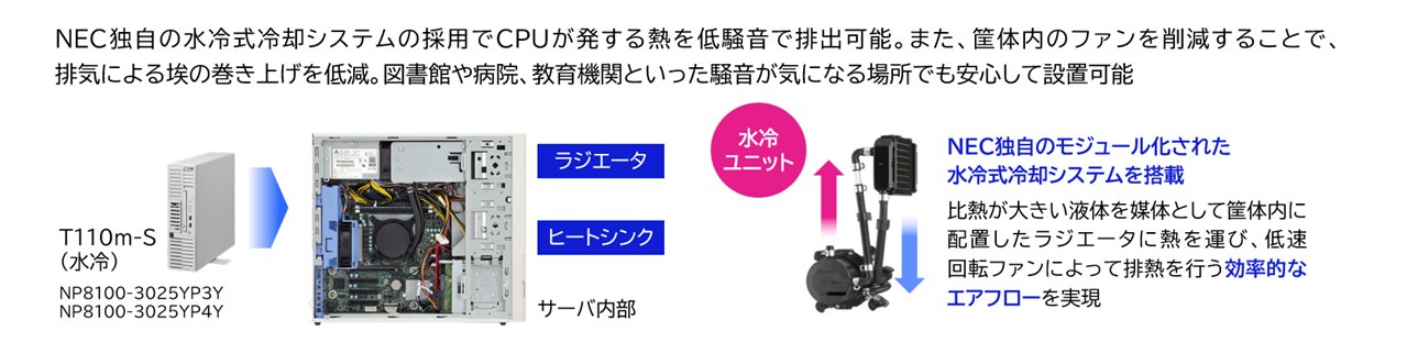 水冷モデル:騒音が気になる場所にも安心して設置可能