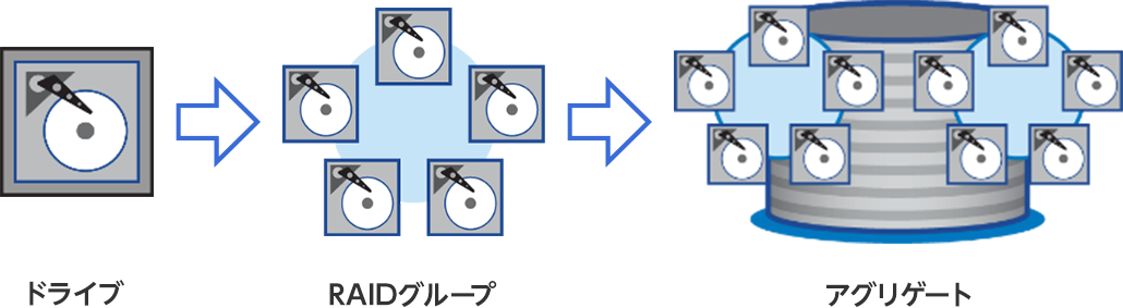 アグリゲートという物理的な器を構成するためのHDDやSSDの1台当たりの容量がどんどん大きくなってきた