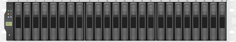 ここからは、FAS2750に1.8TB SASディスクを24台搭載したシステムを例に説明していこうと思います。FAS2750のフロントベゼルをはずすとこんな風に24台のディスクが搭載されている(搭載できる)ことがわかります。