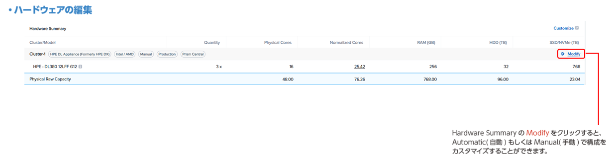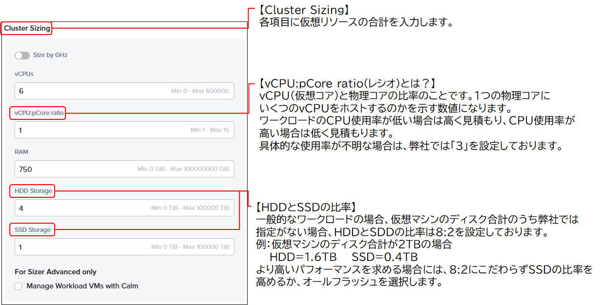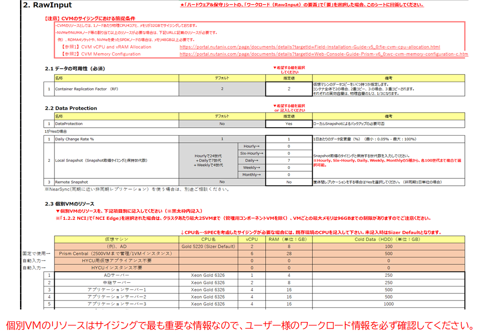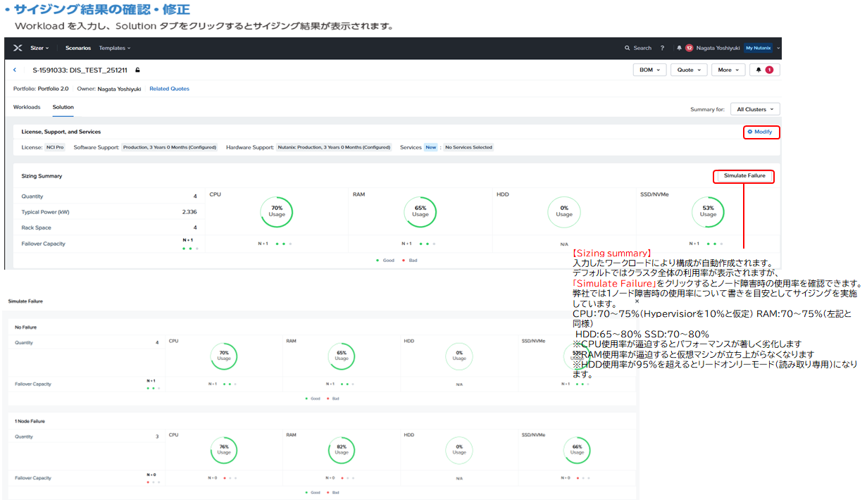 Nutanix ソフトウェアでは仮想マシンのリソース消費のほかにCVM などのオーバーヘッドが発生するため、このオーバーヘッドを考慮してサイジングをする必要がありますが、Sizer を利用すればこれらを自動で計算してくれるので、構成作成にかかる時間を大幅に短縮することができます。