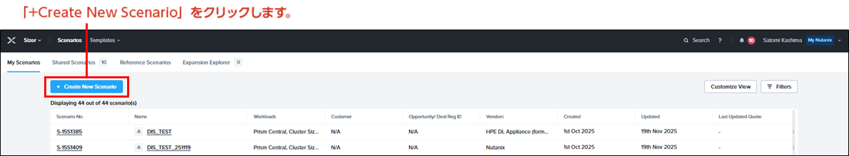 +Create New Scenario をクリック
