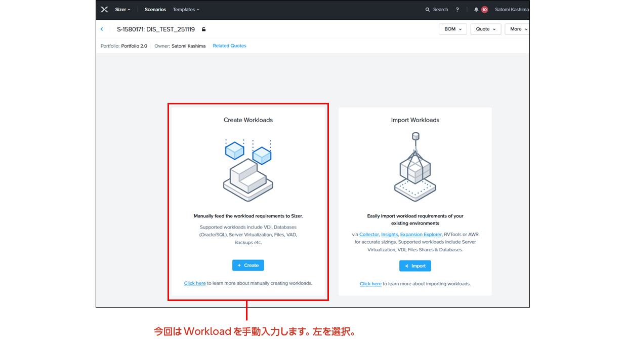 こちらでは、サンプルの仮想マシンリソースを元に、実際にSizer を使ってサイジングする手順を説明します。