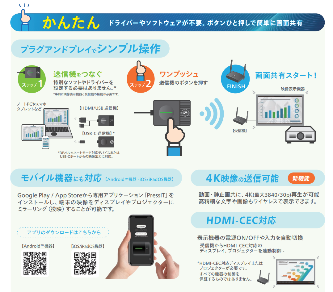 PressIT(WPシリーズ) ワイヤレスプレゼンテーションシステム2 ボタン一押しで簡単に画面共有