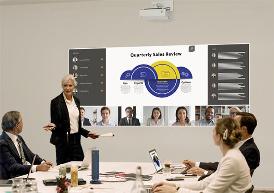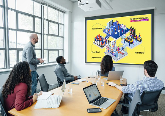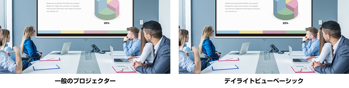 高効率な光学エンジンの採用により、明るい場所でもクリアな視認性を保つ8,000lm*1の高輝度を実現しています。会議・授業中に照明を落としたり、ブラインドを下げたりする手間がなく、互いの表情を見ながら軽快にコミュニケーションいただけます。