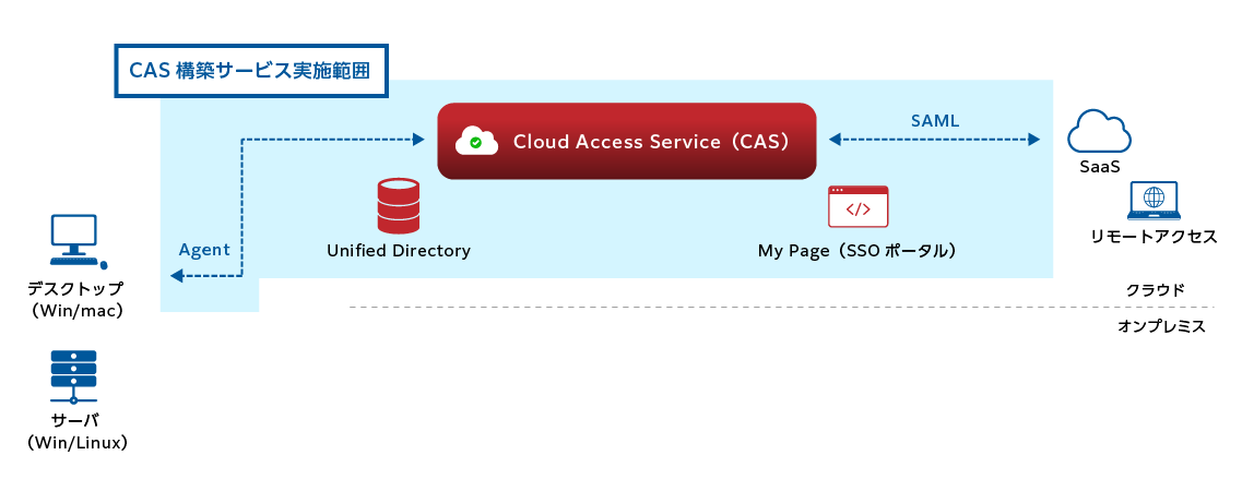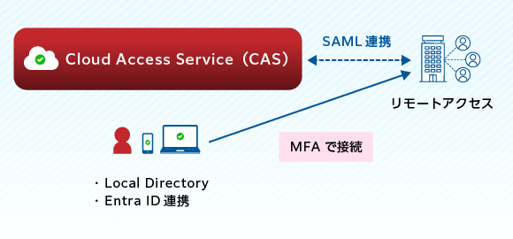 | ユーザーデータベース | Local Directory | CASのLocal Directoryを作成し、ユーザー設定手順書を提供します。 | ✓ | ||