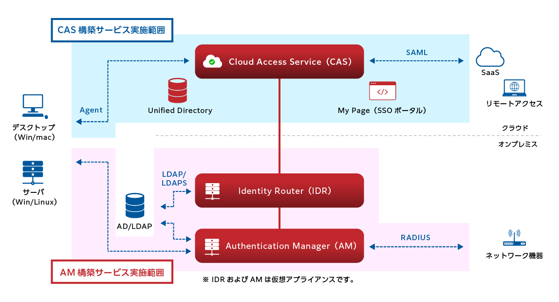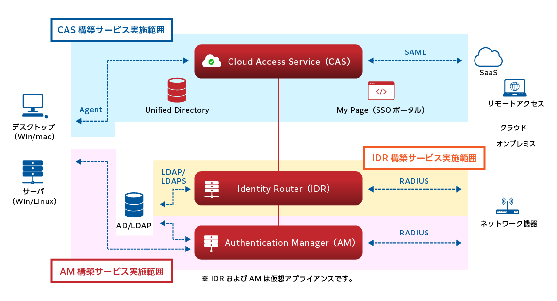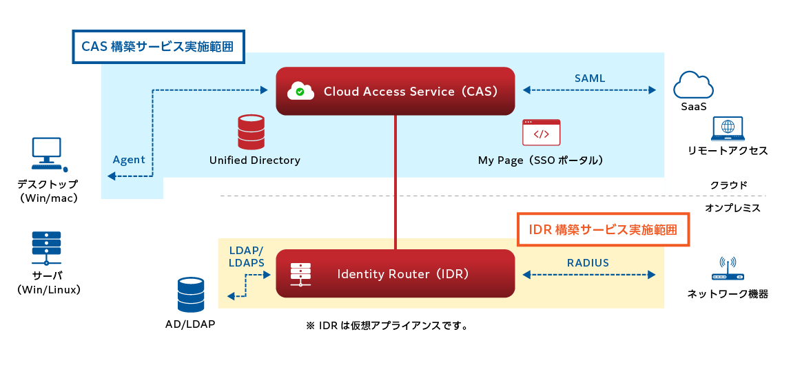 CASのユーザーデータベースとしてAD/LDAP連携を利用する場合は、IDRの構築が必要です。
