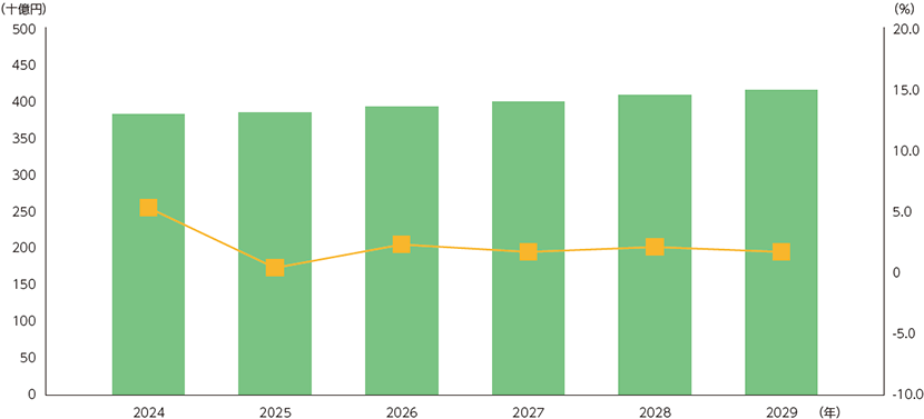 国内企業向けネットワーク機器市場 支出額予測、2024~2029年
