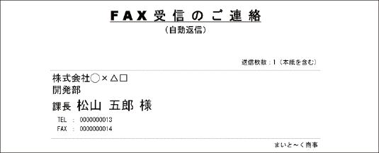 自動返信送付状では、相手先設定に登録された情報を自動で埋め込み返信が可能だ。