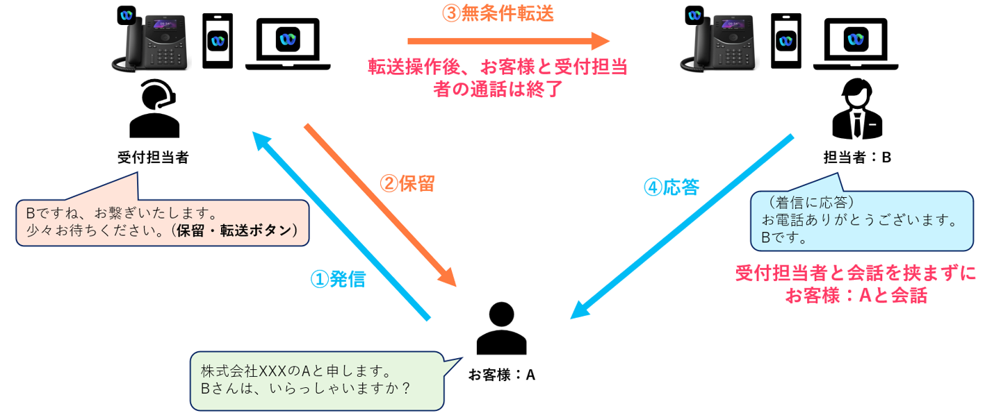 ・【Webexヘルプセンター記事】電話機から別の人に通話を転送する