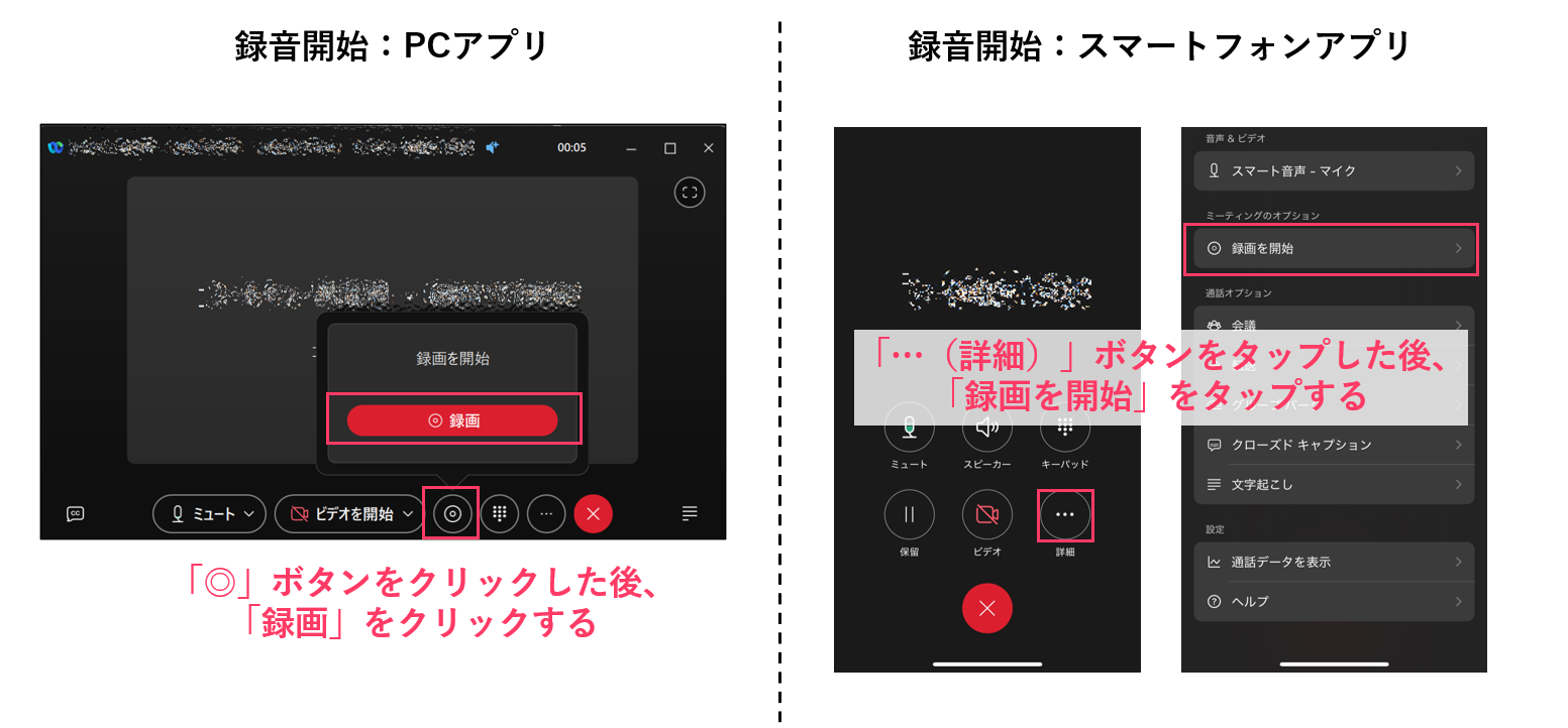 オンデマンド録音の場合は、Webexアプリや電話機の画面上に録音ボタンが表示され、ユーザーが必要に応じて録音を行うことができます。