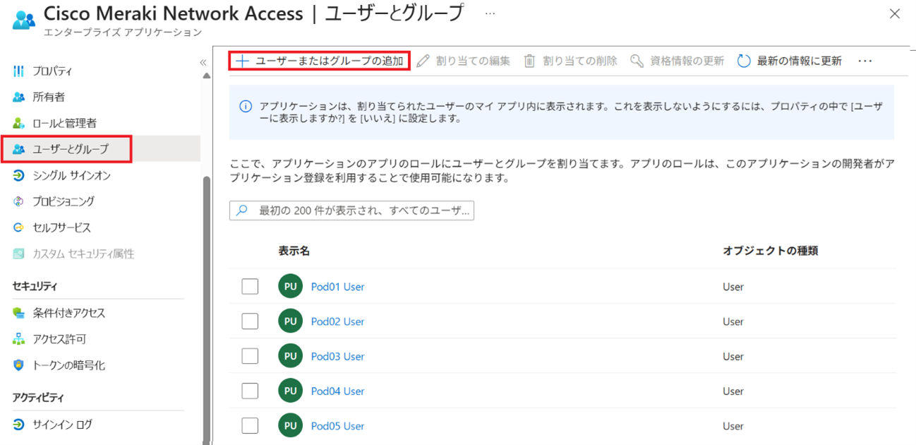 最後に、接続を許可するユーザもしくはグループをアプリケーションに割り当てます。ここで割り当てた対象が認証の対象となりますので漏れがないようにご確認ください。
