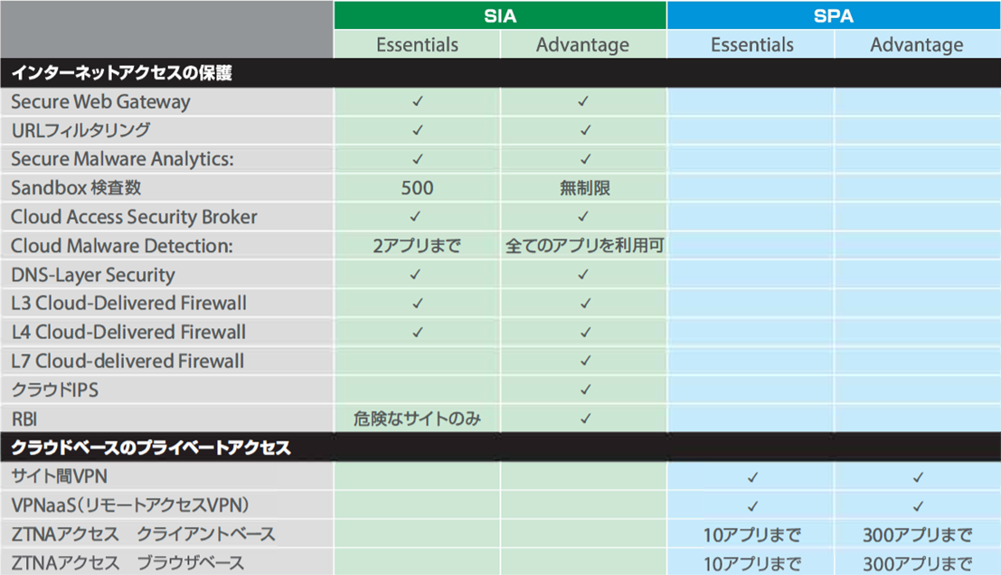 CiscoSecure Accessのライセンスには、SIA(Secure Internet Access)とSPA(Secure Private Access)の2つがあります。