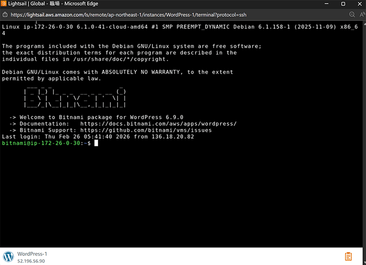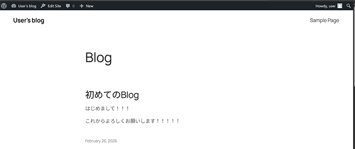 下記URLを入力いただくと、Lightsailで構築したインスタンスで稼働しているWordPressのwebサイトにアクセスできます。
