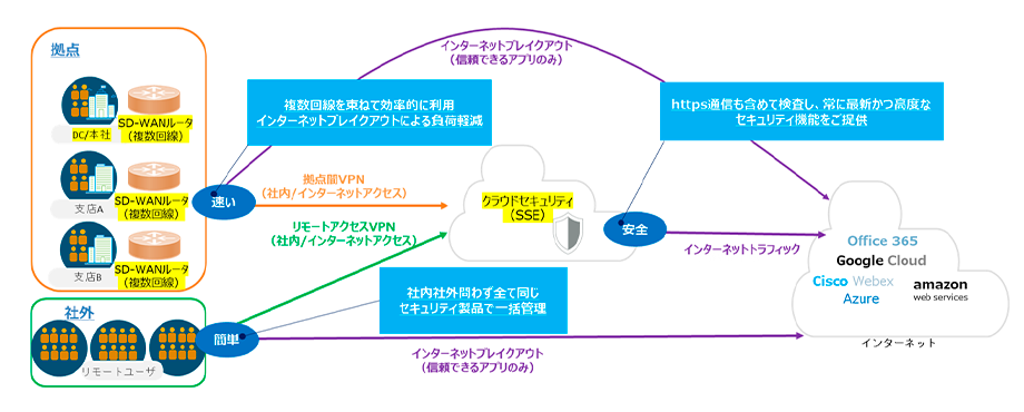 したがって、SSEとSD-WANを融合したSASEを導入することで、企業ネットワークの管理や運用を大幅に簡素化するといった効果が期待されます。