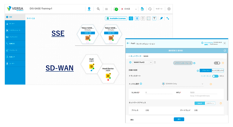 Versa Networksの強みは、ルータとSD-WAN、さらにSSEまでを、統一されたUIで一元管理できることです。SASEの概念が登場する以前からソリューション開発に取り組んできたため、他社とは一線を画しています。Versa NetworksのUIは、管理者にとって操作性が高く、設定作業の負担が軽減されるというメリットがあります。
