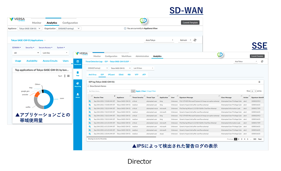 さらに、「Director」と呼ばれるダッシュボードにSD-WANやSSEの情報が集約されているため、可視化や情報収集も効率的に行えることも大きな強みです。